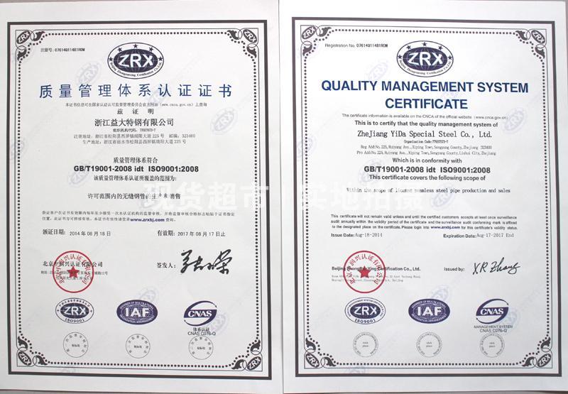 • 益大特鋼有限公司,質量管理體系認證